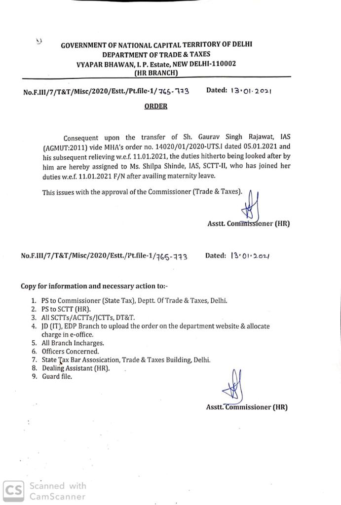 Work allocation Order of Senior Officers Dated 21-Jan-2021 |